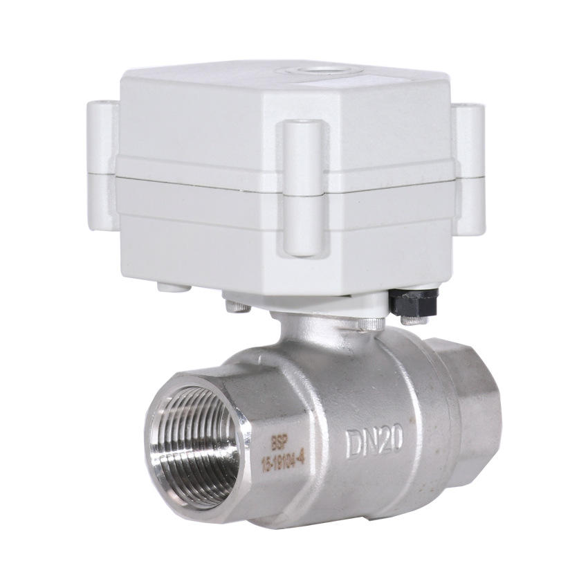Vanne électrique miniature Tonhe 6 points à passage direct, mécanisme métallique, filetage interne bidirectionnel, acier inoxydable DN20 pour eau du robinet