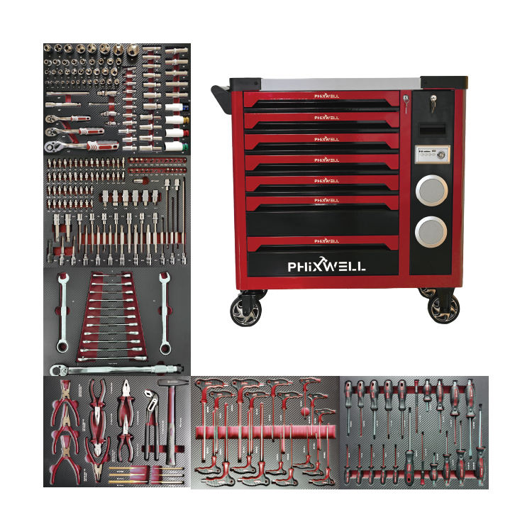 Boîte à outils, armoire de rangement pour garage, bancs de travail en métal pour espace de travail industriel, garage avec outils, kit de réparation automobile, douille à cliquet