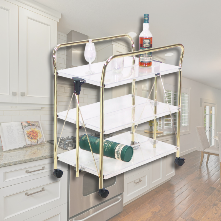 Product name:Tool free two layers wooden board kitchen trolley with frame
