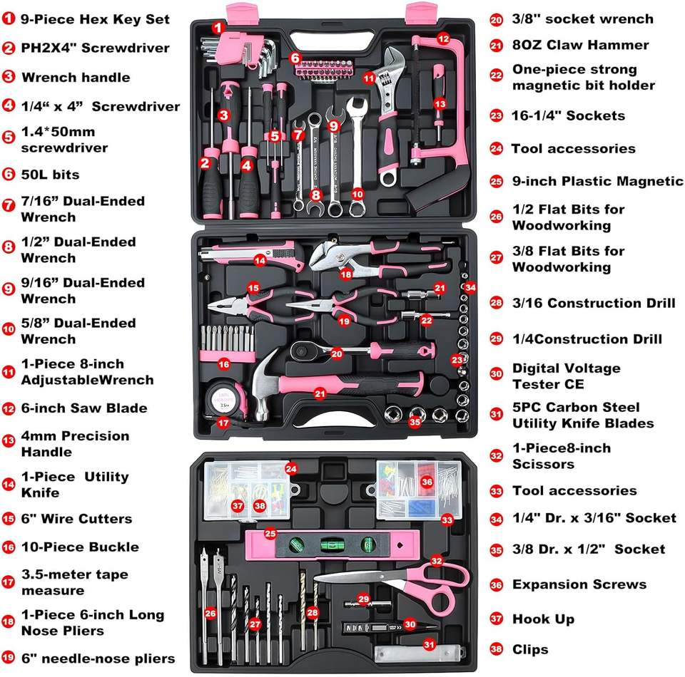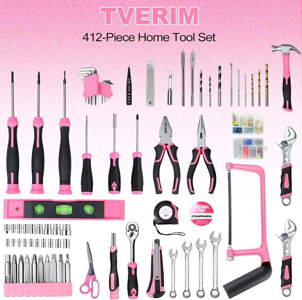 Ensemble d'outils 412 pièces Kit d'outils de réparation à domicile/auto Organisateur de rangement Tiroirs et boîte à outils pour femmes hommes propriétaires bricoleurs bricoleurs