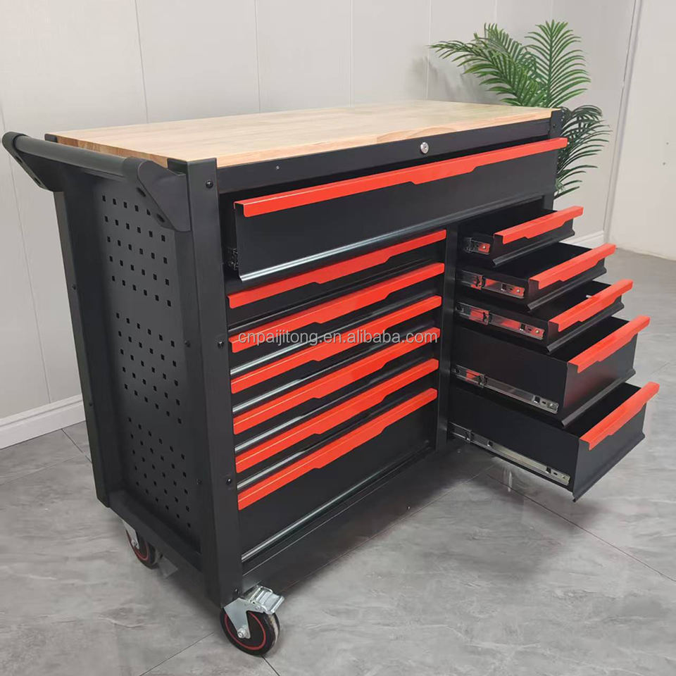 Chariot de rangement d'outils professionnel pour réparation automobile avec tiroirs, ciseaux, marteau, pince et kits d'outils rigides en EVA