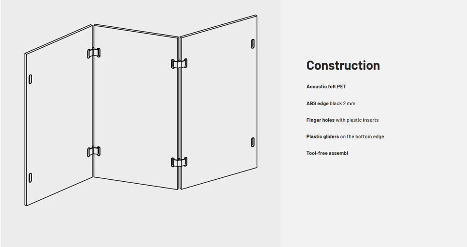 Paravent mobile flexible en feutre, montage sans outil, 9-15 mm, configurations illimitées, cloison acoustique pour l'intimité