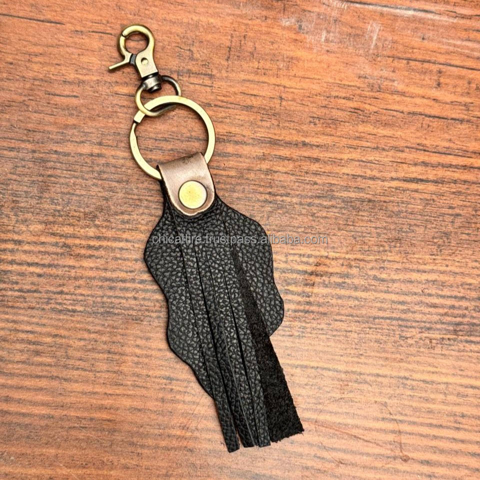 Porte-clés en cuir repoussé plume turquoise porte-clés à franges en cuir véritable personnalisé Western porte-clés en cuir de luxe Cowgirl