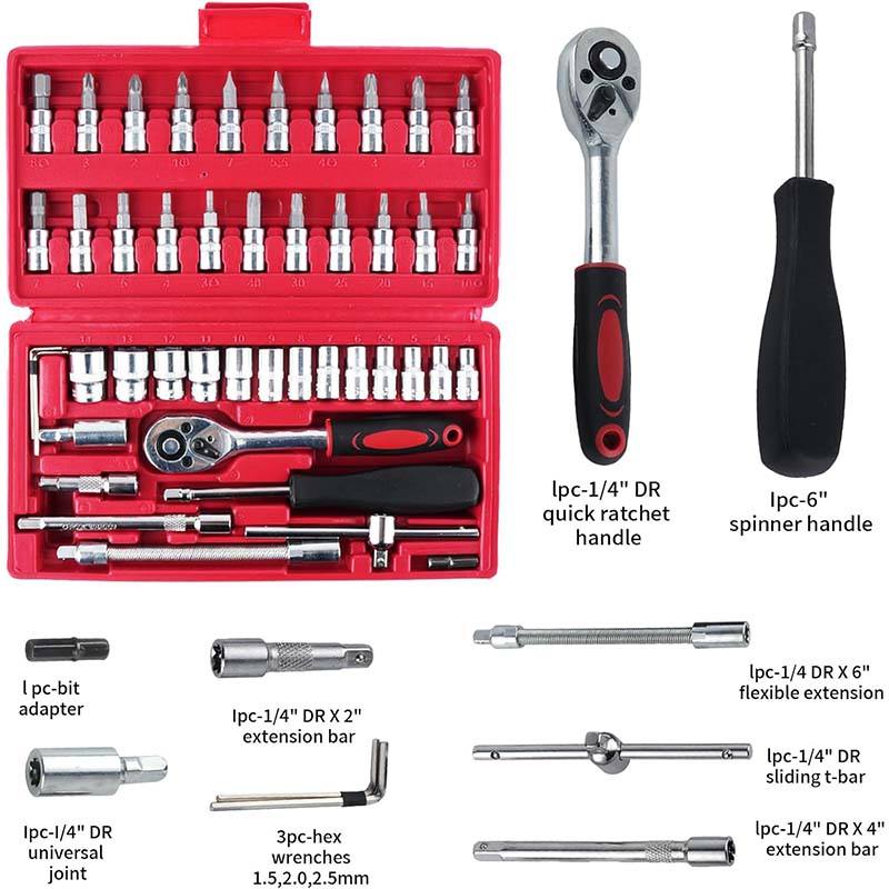 Outils, embout de tournevis magnétique, 40 pièces, rallonge, adaptateur, barre, poignée, clé à cliquet combinée, jeu de douilles avec boîte et sac