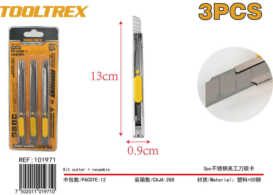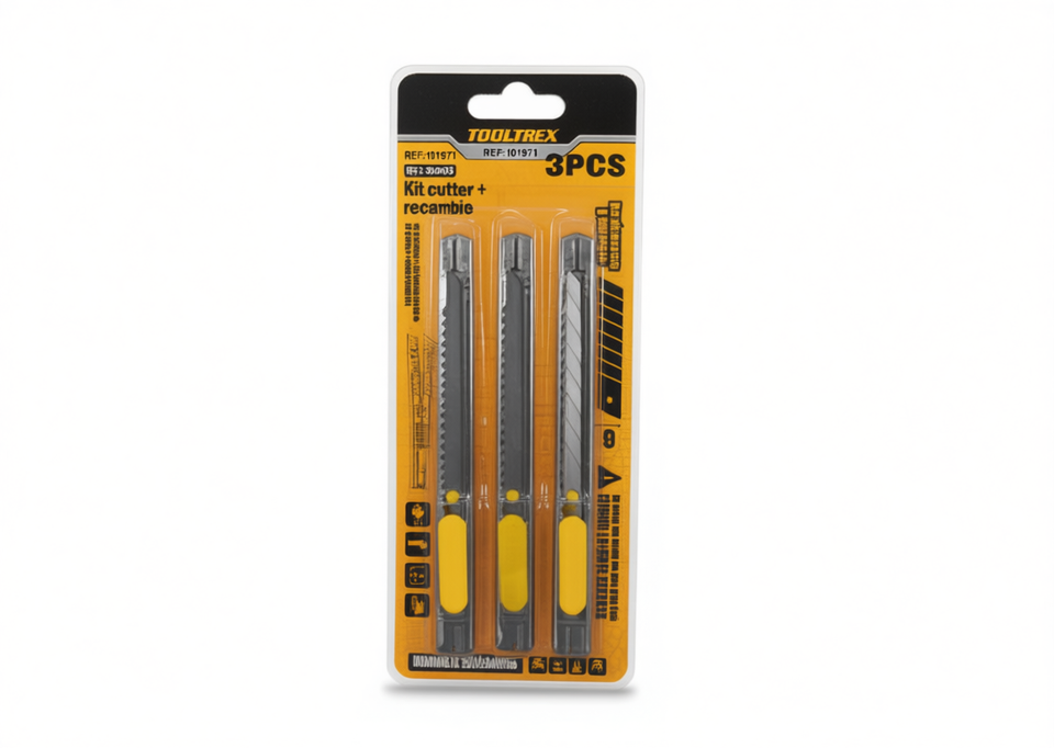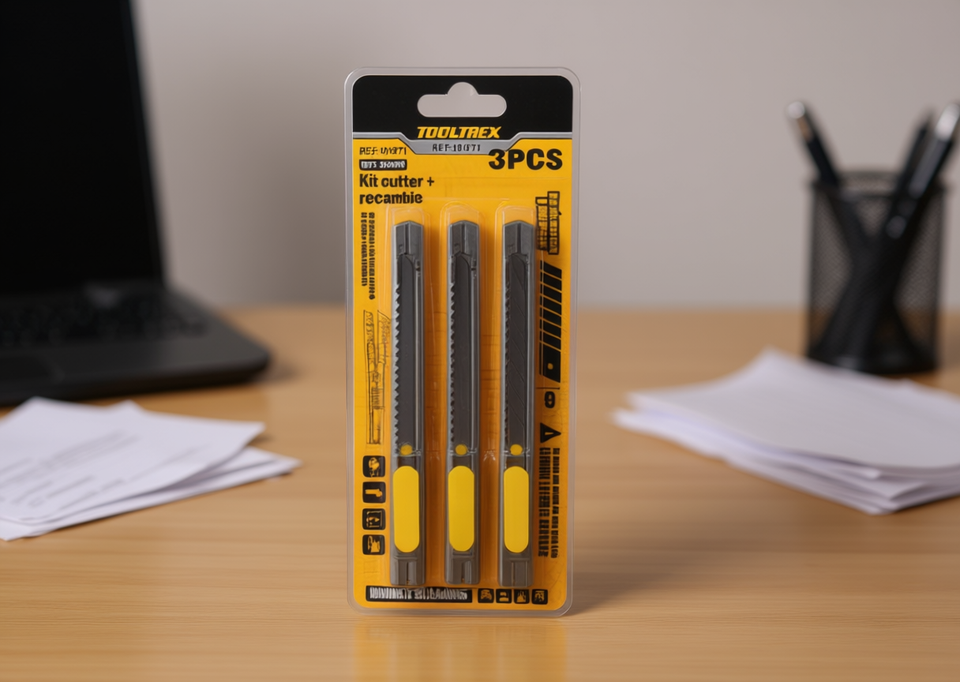 Kit de couteaux utilitaires Tooltrex, 3 lames amovibles en acier au carbone, manche en plastique, fournitures de découpe pour le bureau