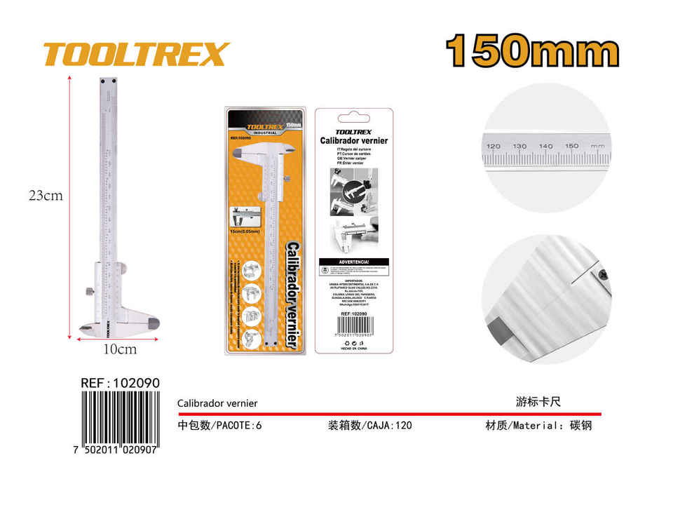 Pied à coulisse Tooltrex, résolution 0,01 mm, longueur 150 mm, outil de mesure de précision pour le travail des métaux et l'ingénierie
