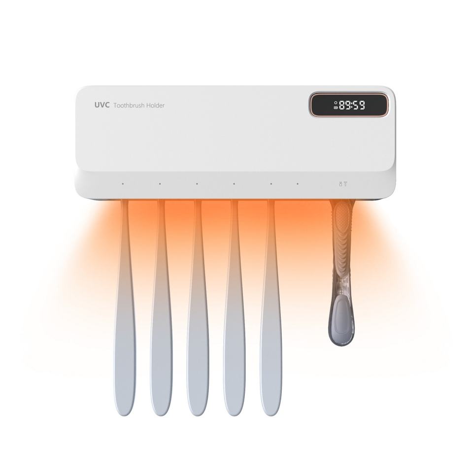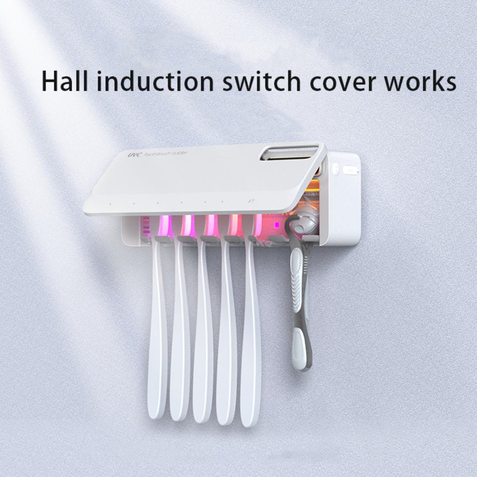 Support mural rechargeable pour brosses à dents avec 5+1+1 emplacements, stérilisateur UV portable pour brosses à dents avec fonctions chauffantes