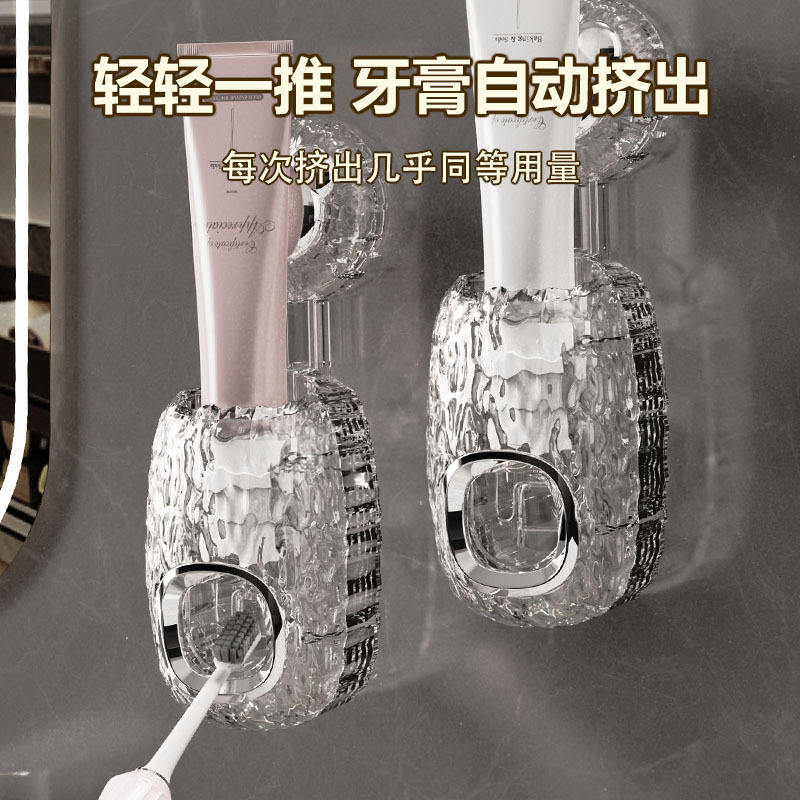 Toothpaste Dispenser Wall Mounted Automatic No Drilling Required With Elastic Silicone Hole For Multiple Toothpastes