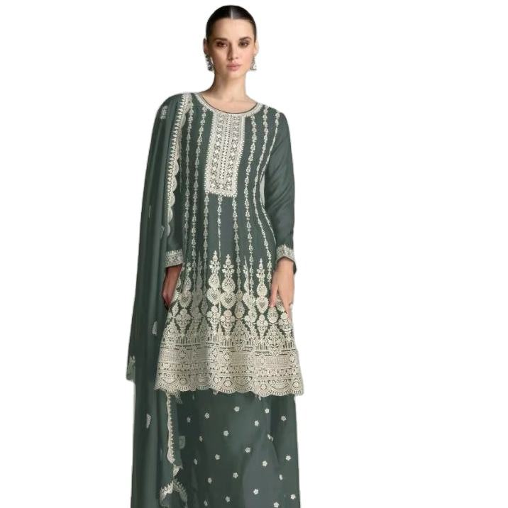 Top 100% meilleure qualité matériel concepteur femmes musulmanes portent CHNION soie broderie travail tailleur femme de chambre Salwar Kameez
