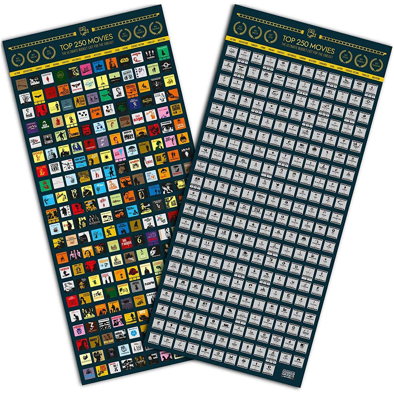 Top 250 Movie Bucket List Scratch off Map Poster Ultimate Film Guide with the Best Movies of All Times
