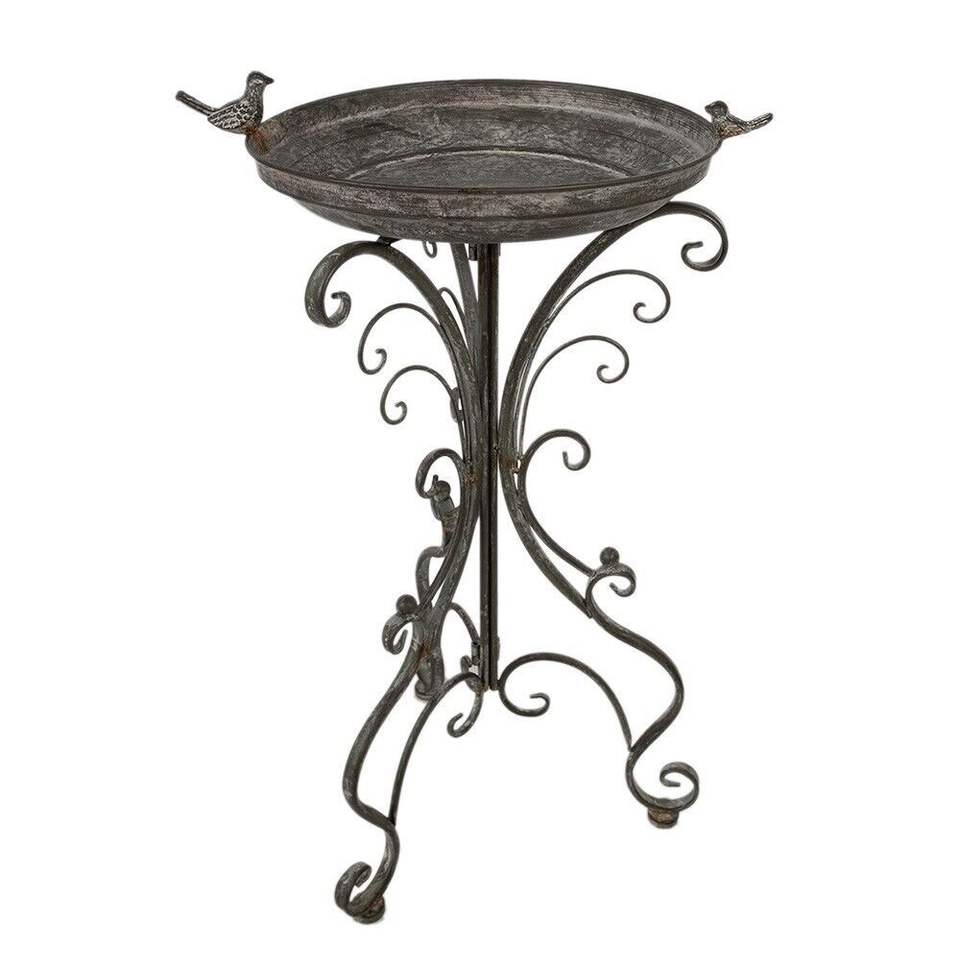 Nouvel Arrivage – Bain d'oiseaux décoratif moderne en fer noir thermolaqué, personnalisable, sur piédestal métallique pour extérieur