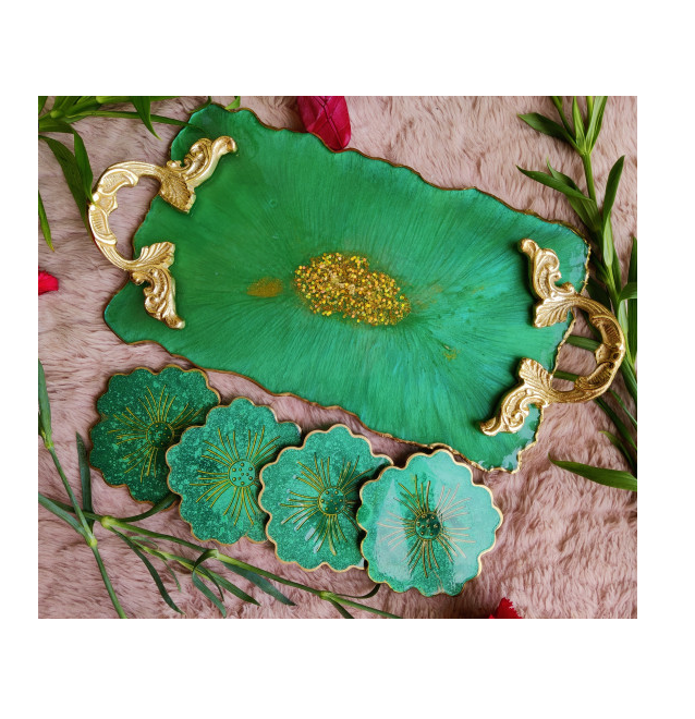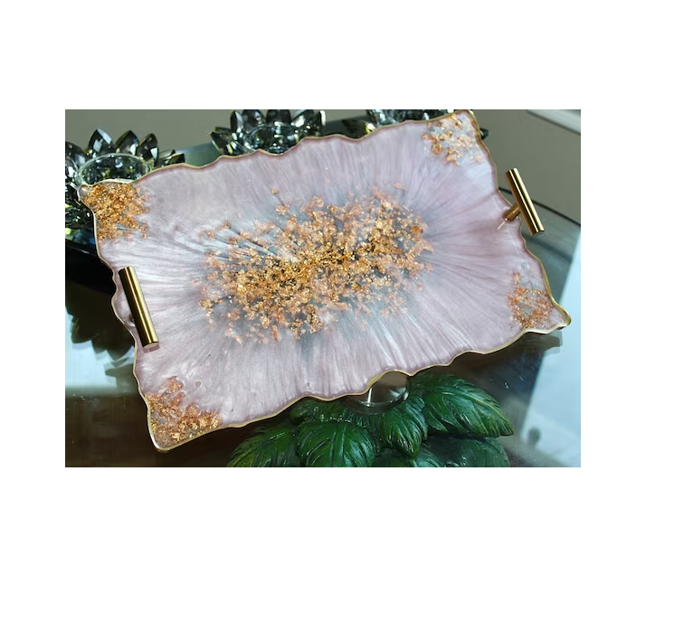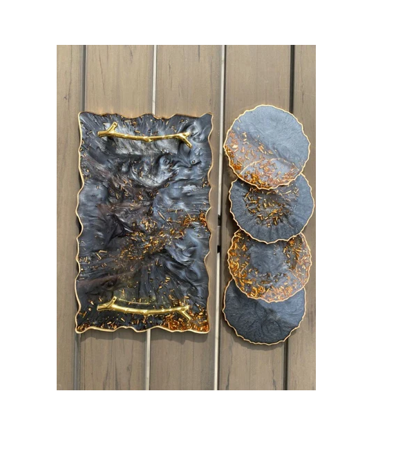Plateau de service en résine au design attrayant pour le bureau et les hôtels Plateau en résine époxy pour le café et le thé