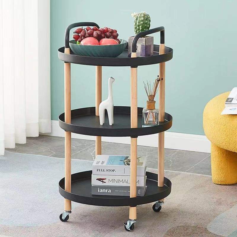 Chariot de cuisine moderne en hêtre et PP, chariot de rangement mobile pour thé et légumes