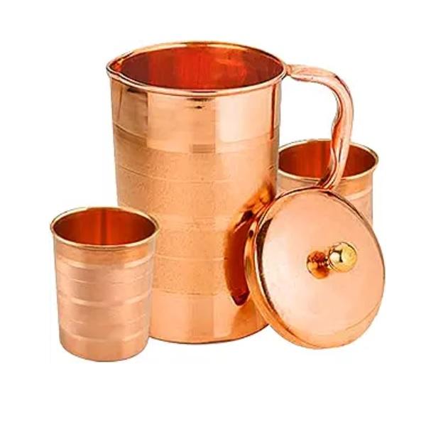 Carafe à eau en cuivre pur martelé de qualité supérieure, vaisselle de table, avec 2 ensembles de gobelets