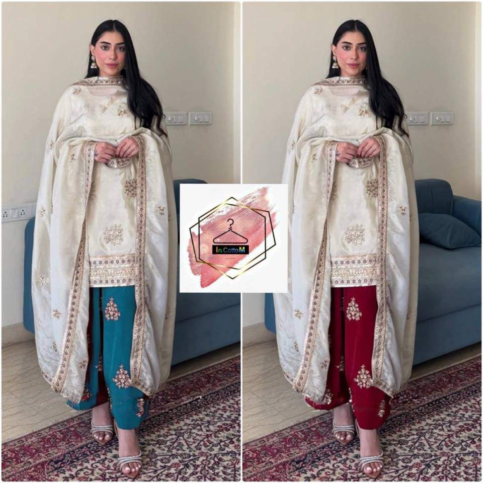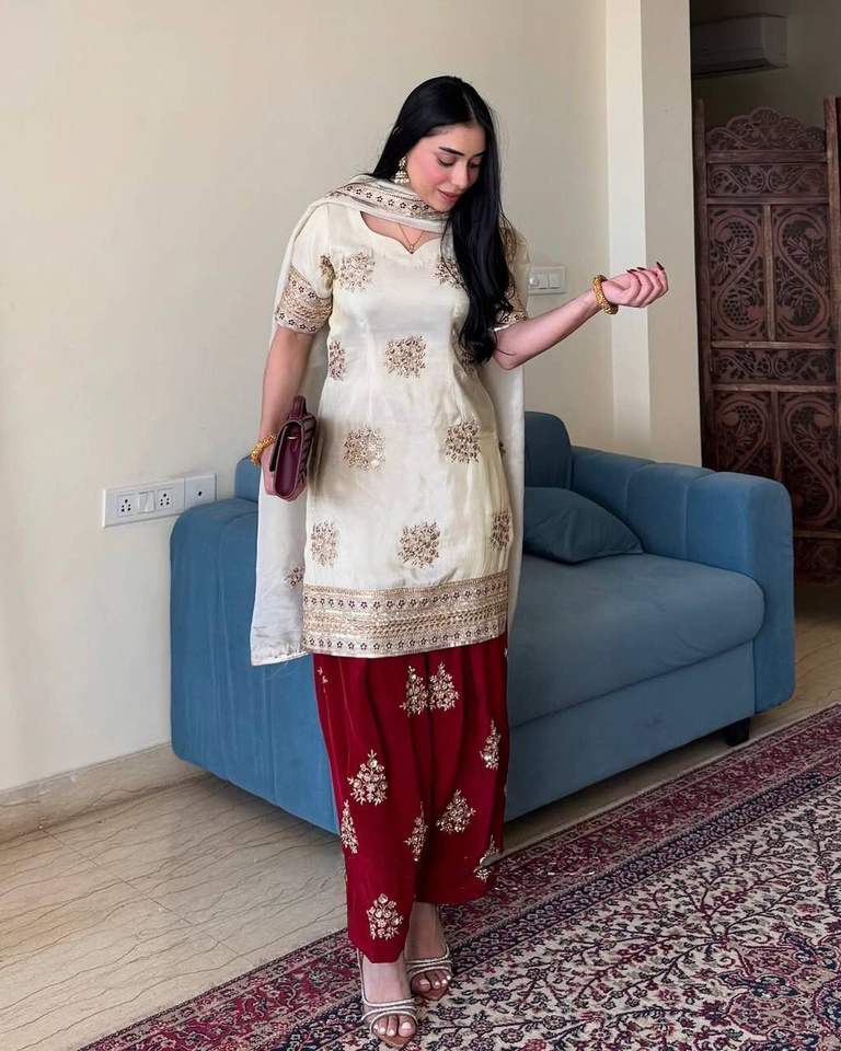 Chinon Silk Sequence Embroidery Top & Bottom With Dupatta