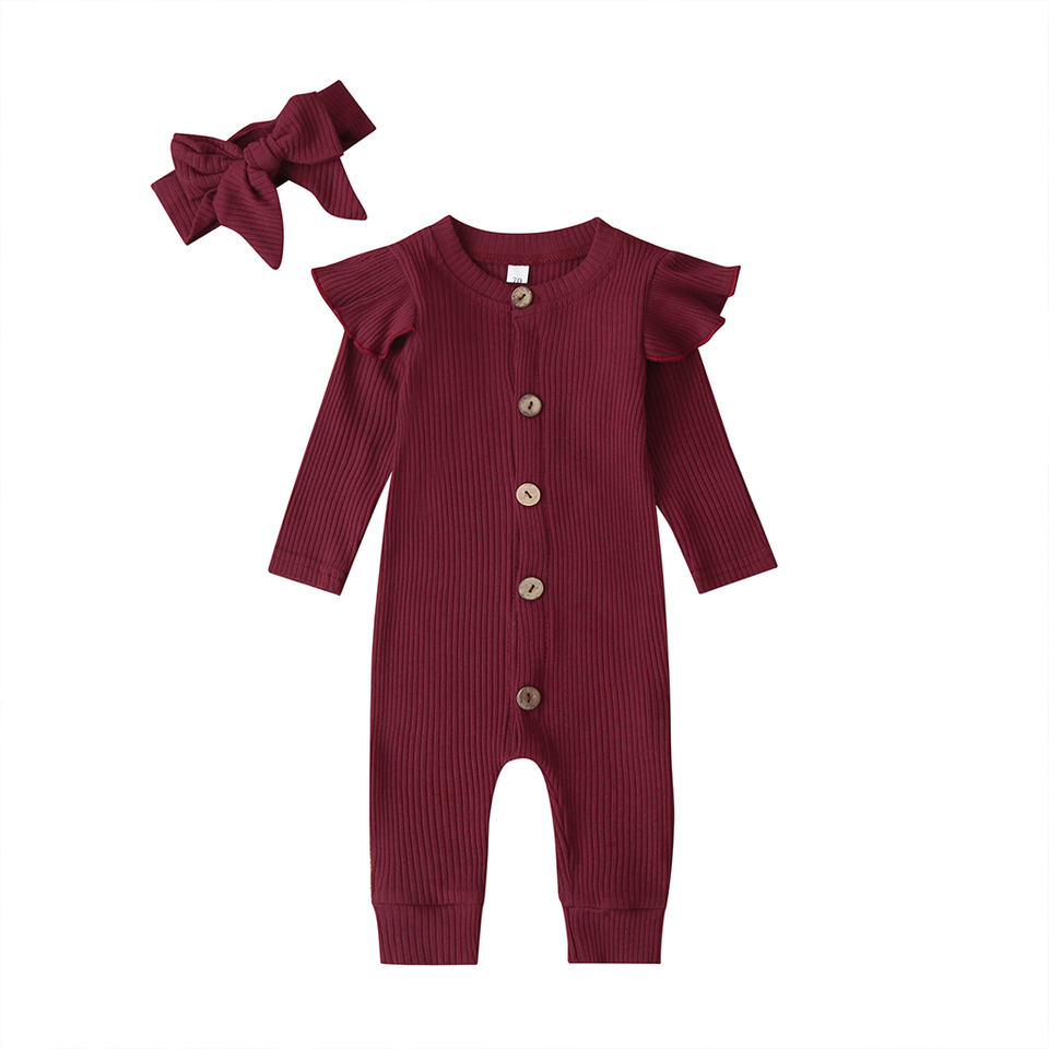 Combinaison pour bébé fille de qualité supérieure, couleur unie, automne, vêtements pour nouveau-né, barboteuses avec bandeau