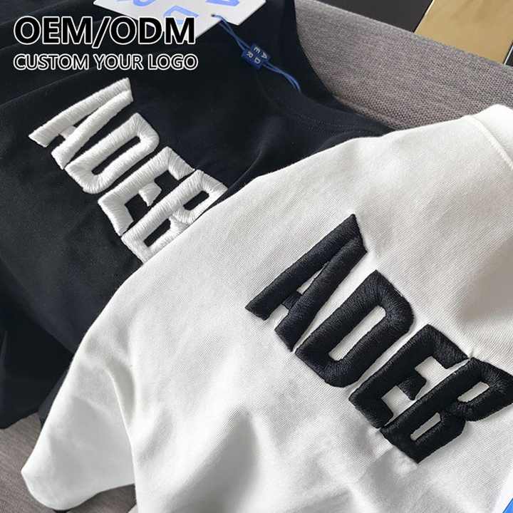 Fabricant de vêtements de premier plan, t-shirt personnalisé avec logo brodé, 100% coton, poids lourd, col rond, broderie, t-shirt pour homme, unisexe