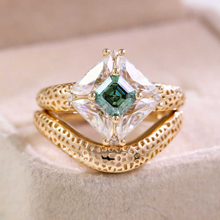 Ensemble de bagues pour femme de haute qualité, or 10 carats, pierres en moissanite, design unique, bague personnalisée