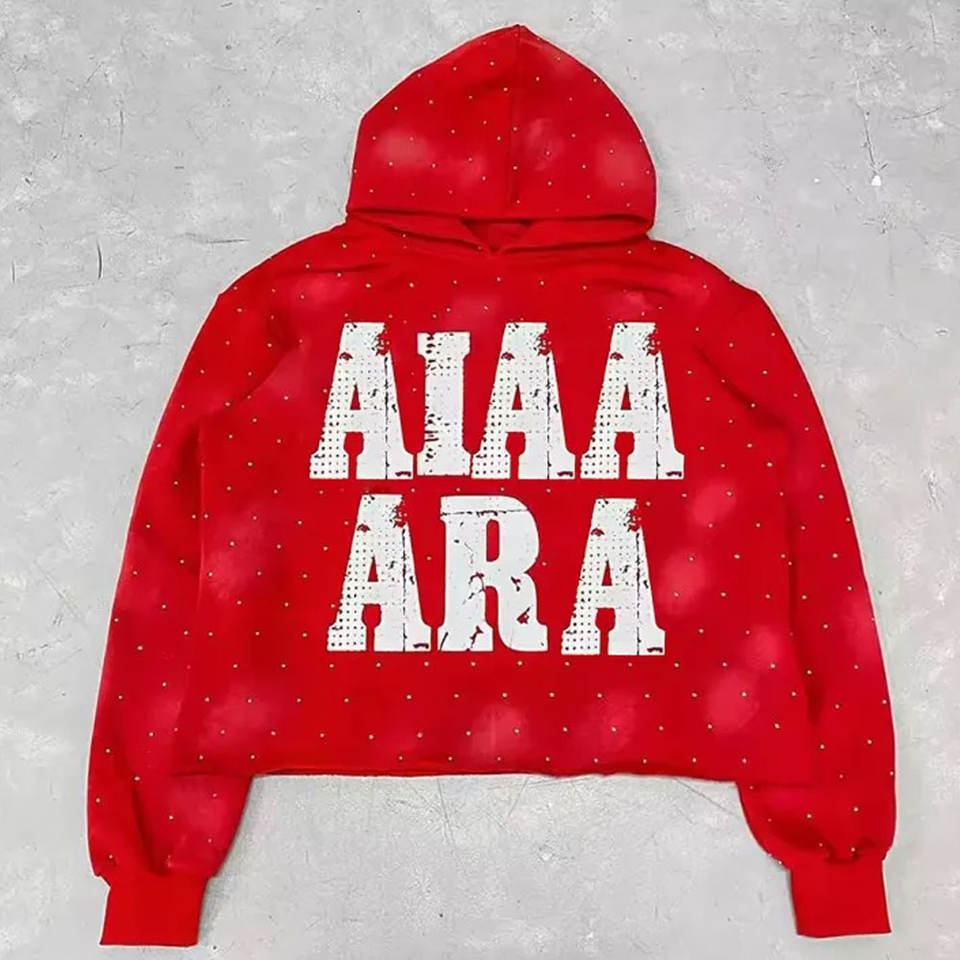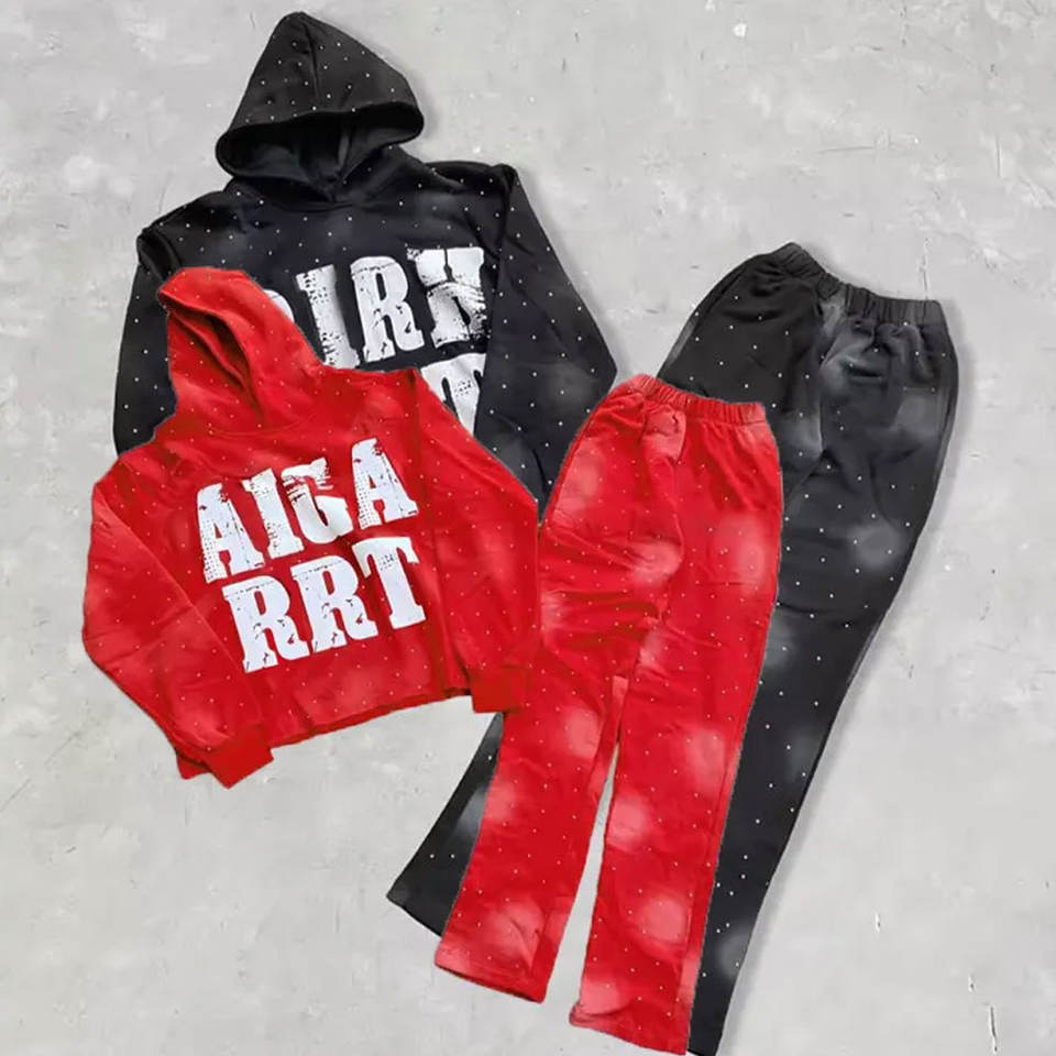 Top personnalisé hiver lavage à l'acide évasé survêtements Zip 450 GSM 100% coton Jogging costume en détresse soleil délavé strass sweats à capuche
