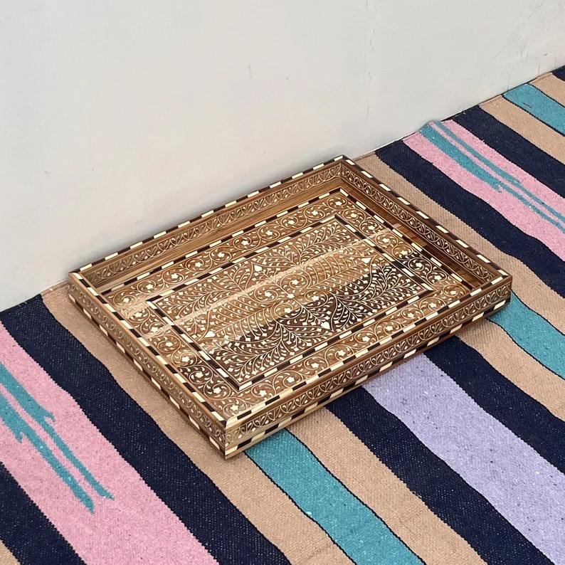 Plateau d'incrustation d'os le plus demandé pour l'accent de la maison et le cadeau fonctionnel ou toute utilisation d'occasion disponible au prix d'exportation depuis l'Inde