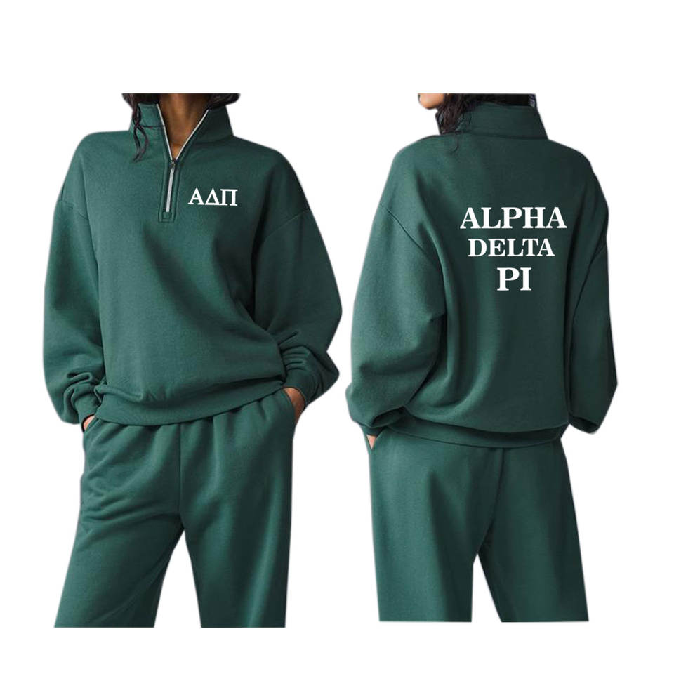Top Design Alpha Delta Pi hiver sweat femmes col rond goutte épaule à manches longues Campus porter fraternité sweat