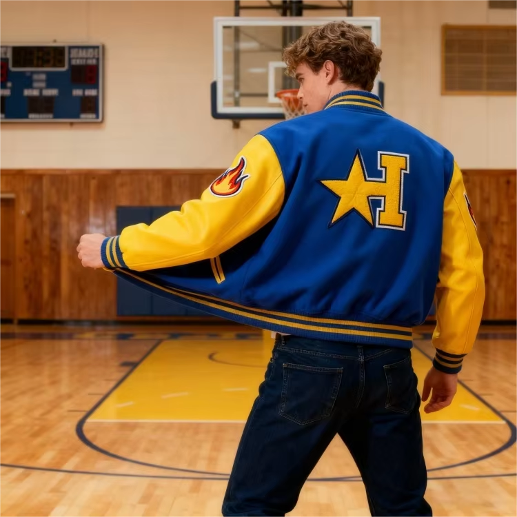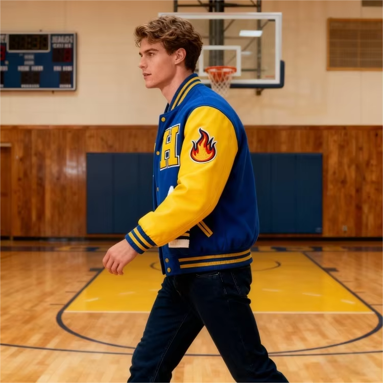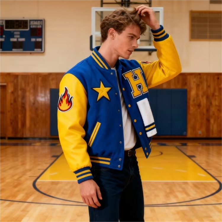 Blousons universitaires pour hommes en laine, design haut de gamme, avec lettres brodées, broderie chenille, patchwork, broderie sur le devant, personnalisables OEM