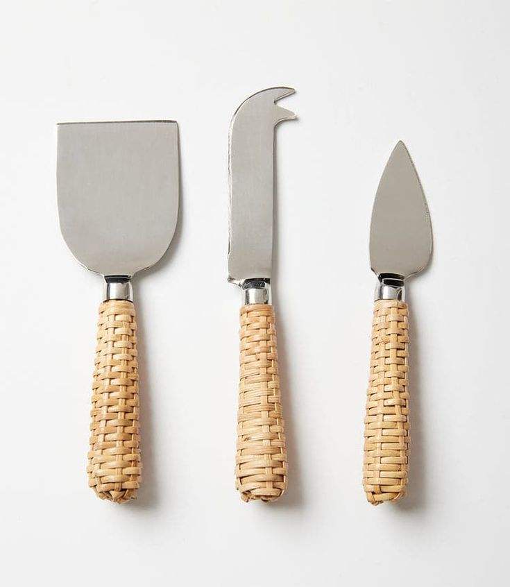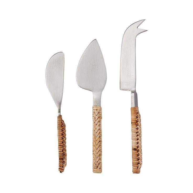 Ensemble à fromage en acier inoxydable de conception haut de gamme avec manche en rotin pour la cuisine à domicile, accessoires, ensemble de couteaux à fromage, best-seller