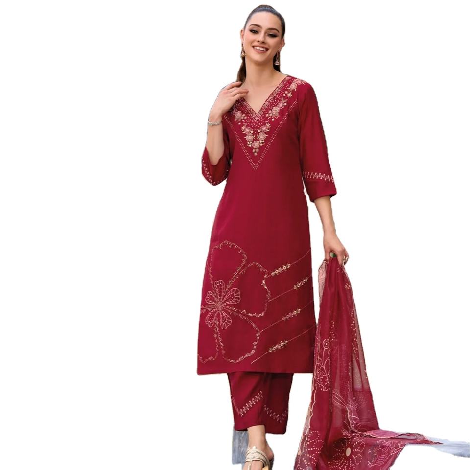 Top Designer Broderie & Travail manuel sur tissu Viscose Silk Kurti avec intérieur et impression numérique dupatta Kurtis set