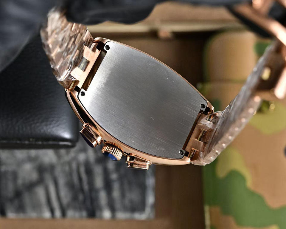 Montre mécanique automatique de luxe haut de gamme, sportive, ovale, en caoutchouc, lumineuse, avec calendrier et chronographe entièrement sertie de pierres.