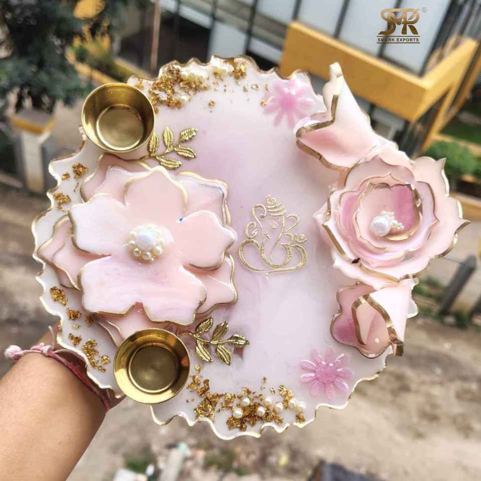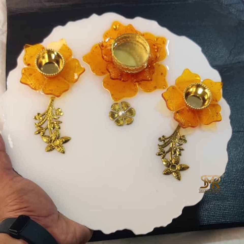 Plateau de Puja en résine époxy écologique haut de gamme, modèle décoratif pour le festival de Diwali, les rituels quotidiens à la maison, les mandirs, les cadeaux