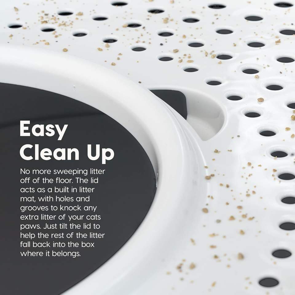 Bac à litière haut de gamme pour chat avec couvercle anti-éclaboussures et pelle, résistant aux chiens, couleur gris/blanc, et accessoires inclus
