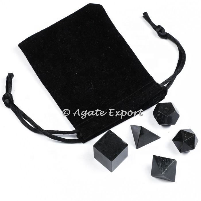 Ensemble de pierres géométriques en obsidienne noire avec pochette en velours