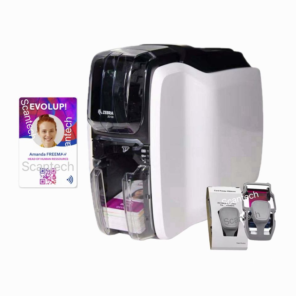 Top Famous Zebra ZC100 Card Printer 300 DPI PVC Single-Sided Id Card Printer Machine Cheap Rfid Card Printer