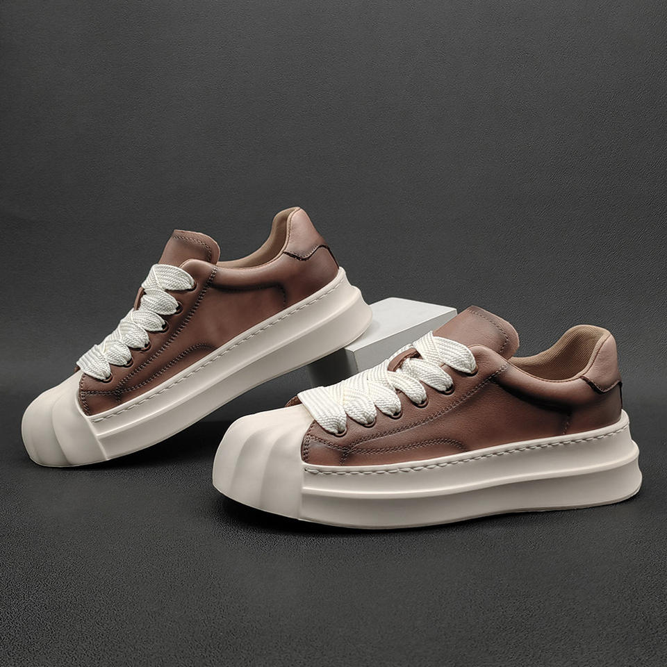 Chaussures de sport décontractées en cuir respirant pour hommes et femmes de style épais