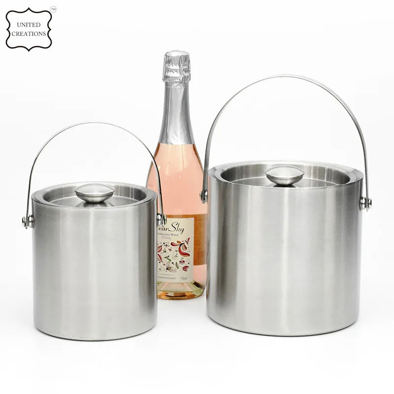 Seau à glace en acier inoxydable haut de gamme avec poignée Seaux à glace de refroidissement de fête intégrés Bacs à boissons