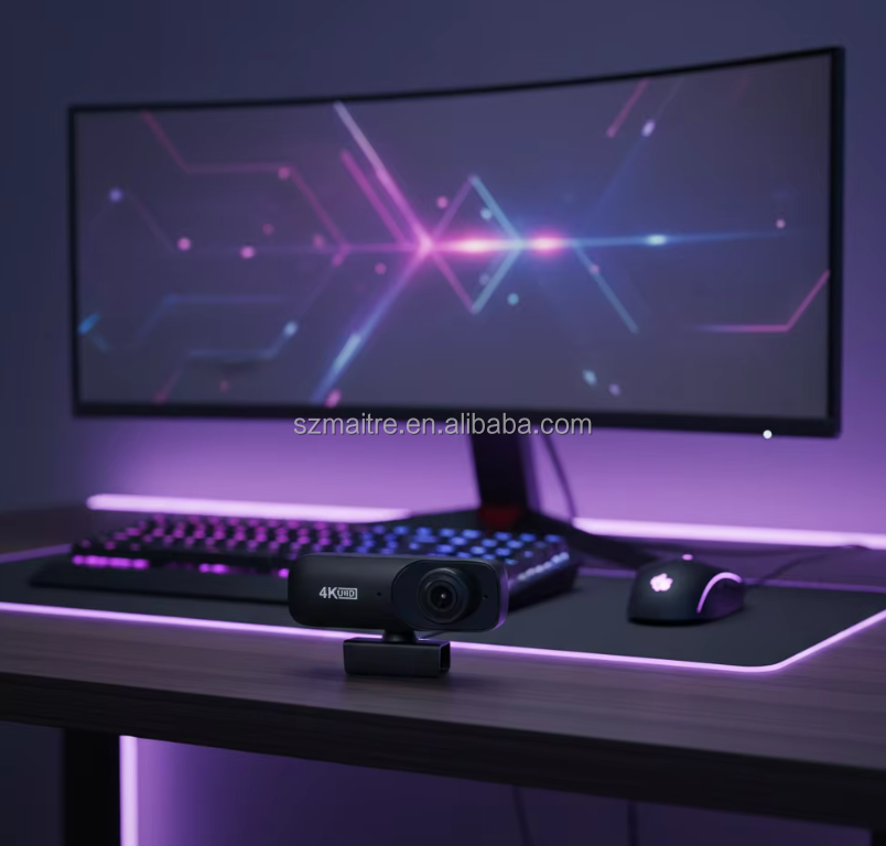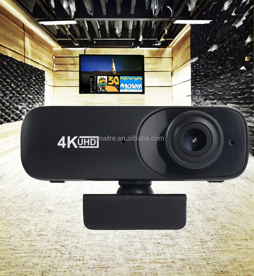 Caméra sans fil de haute qualité, 360 degrés, caméra de sécurité domestique noire, webcam USB 4k avec microphone