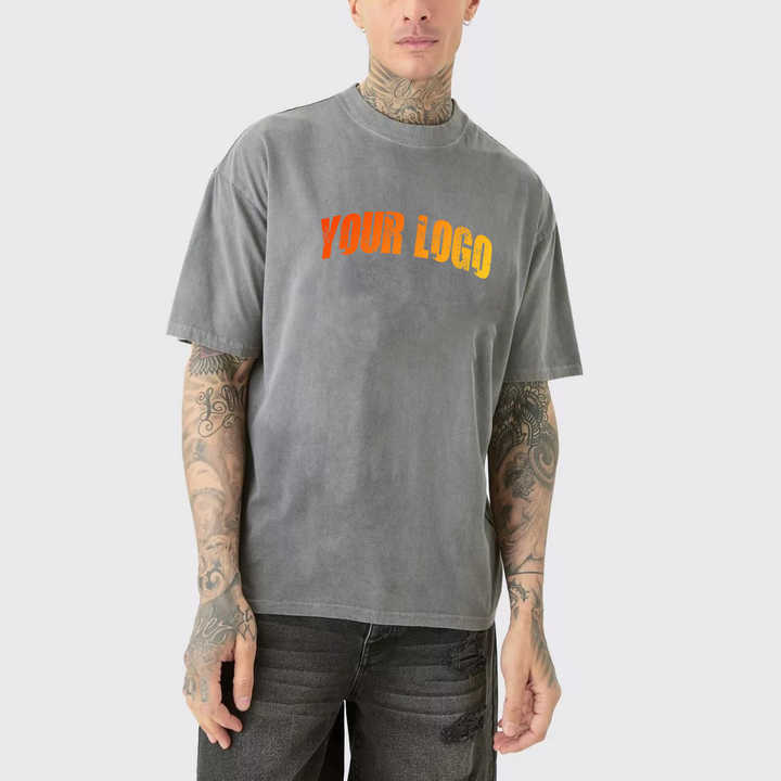 T-shirt pour homme tendance, effet délavé, logo imprimé DTG personnalisé, 100% coton, manches courtes, style vintage, hip hop