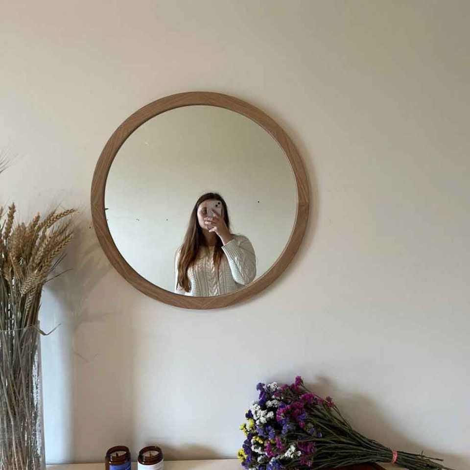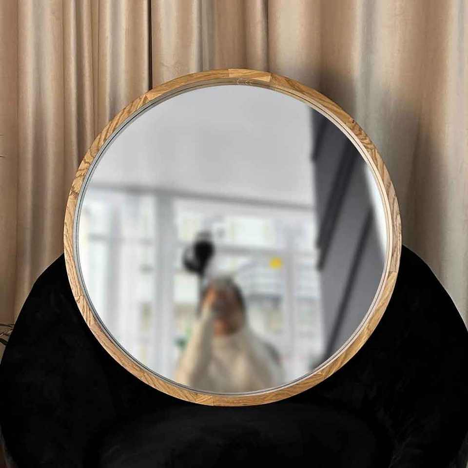 Top Fitness Mirror Manufacturer in India Modern Handmade Wall Mirror with Wooden Frame Round Design