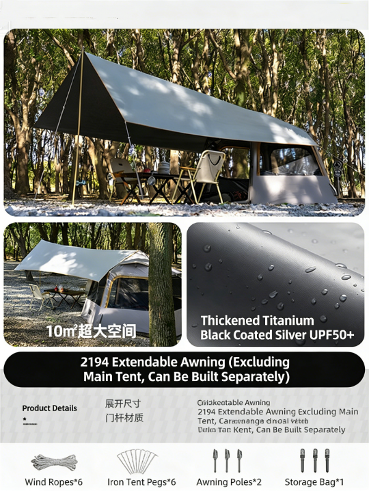 Auvent allongé kaki noir titane [tente non incluse]