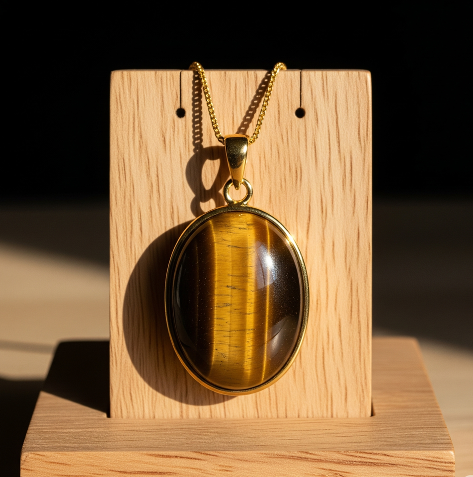 Chaîne en acier inoxydable de qualité supérieure, bohème, en forme de goutte d'œil de tigre naturel, plaqué or 24 carats, pendentif de cristal de guérison tendance