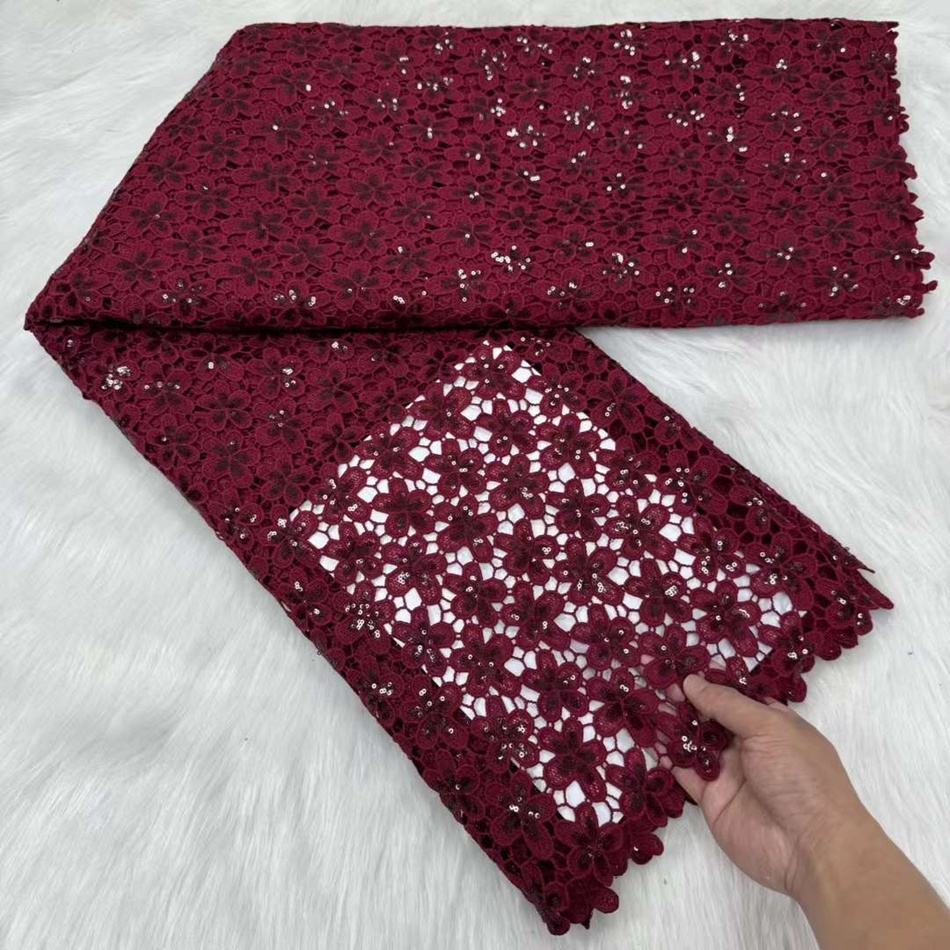 Top- Grade Gold Heavy African Lace Fabrics Guipure Gold Cord Lace 2024 Latest Cord Lace Fabric