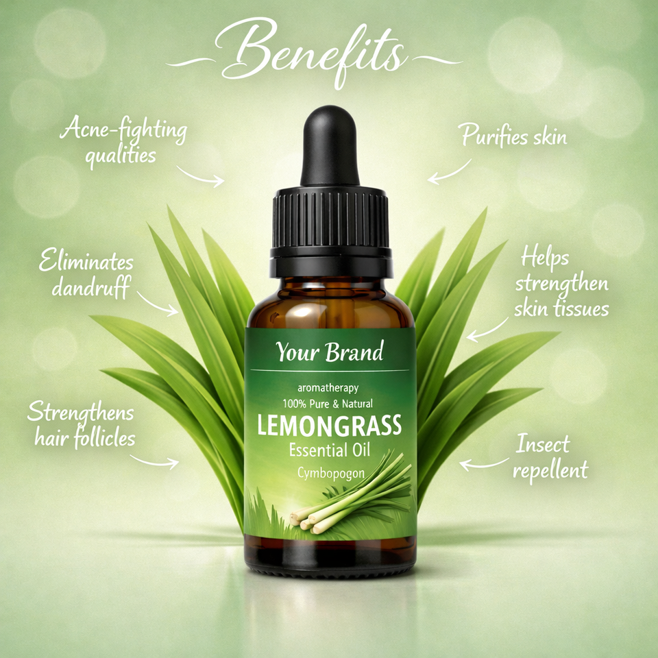 Huile essentielle de citronnelle 100% pure naturelle biologique de qualité supérieure Soins de la peau Anti-âge Anti-rides Tous types de peau