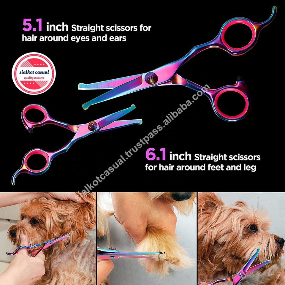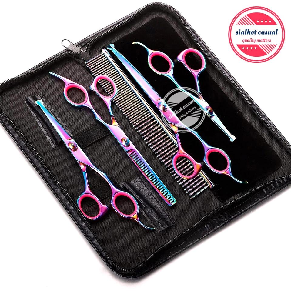 Ciseaux de toilettage en acier inoxydable pour animaux de compagnie, matériel de qualité supérieure, à bords tranchants, avec peigne, ensemble de 5 pièces, nouveauté