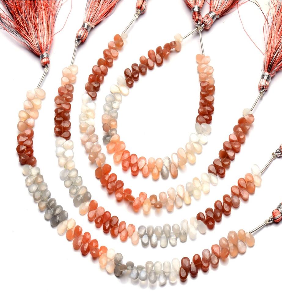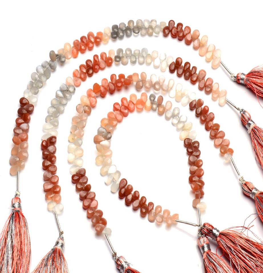 Perles de briolette en forme de poire à facettes multi-pierre de lune de qualité supérieure