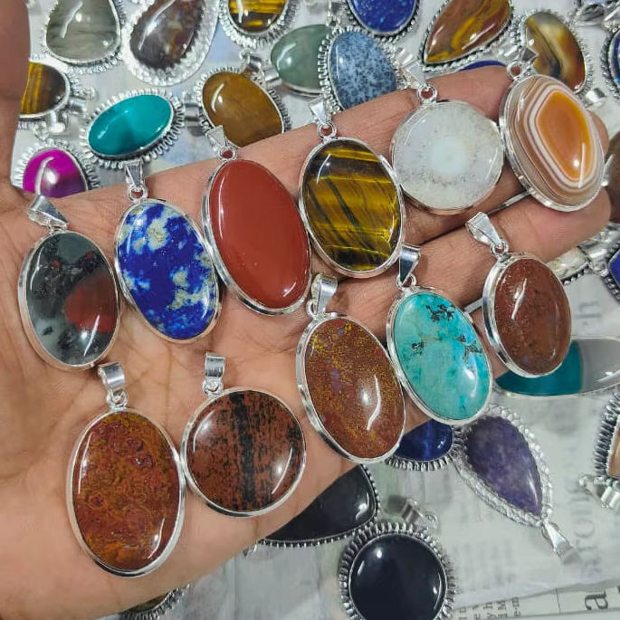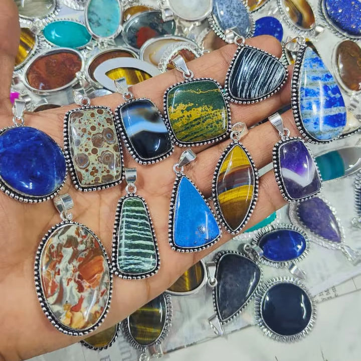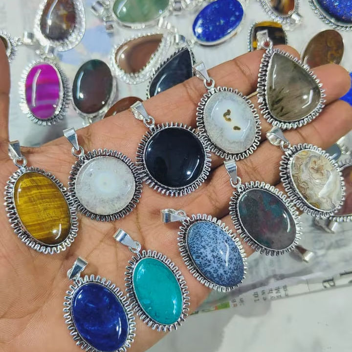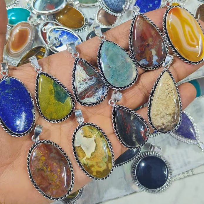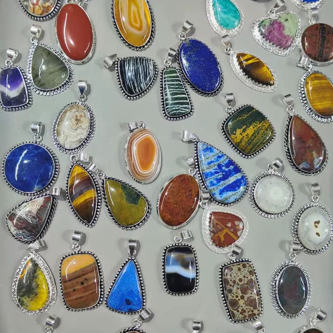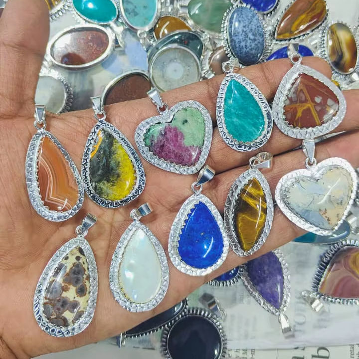Pendentifs de qualité supérieure!!! Mix Stone Pendentifs en pierre semi-précieuse Pendentifs plaqués argent