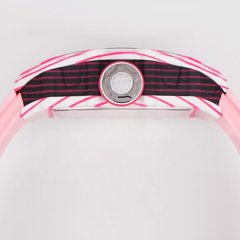 Montre mécanique automatique squelette ETA de qualité supérieure pour homme, boîtier dégradé blanc-rose, mouvement visible, bracelet en caoutchouc, luxe et sport