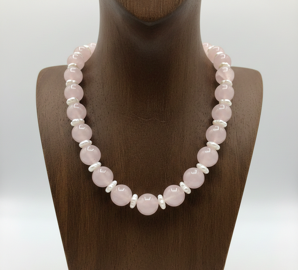 Collier en quartz rose de qualité supérieure, perles géométriques, unisexe, 18 pouces, plaqué or, noué à la main, bijoux tendance, cadeau