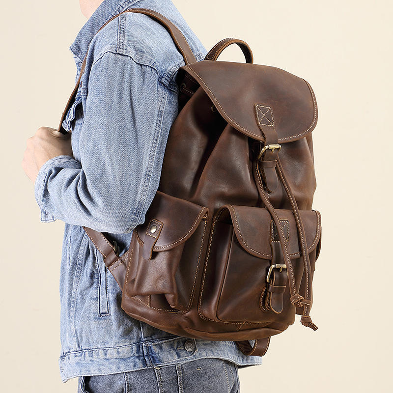 Top-Grain peau de vache en cuir véritable hommes sac à dos fermeture à glissière cartable à la mode pour sac d'ordinateur de voyage