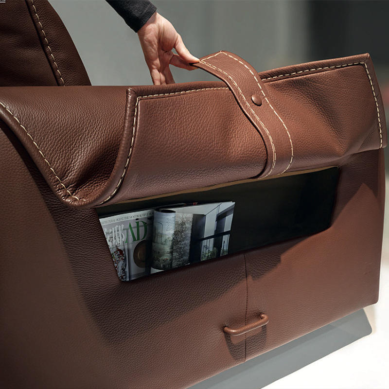 Canapé en cuir de vachette pleine fleur avec fonction de rangement, forme droite, entièrement en cuir véritable, meubles de salon