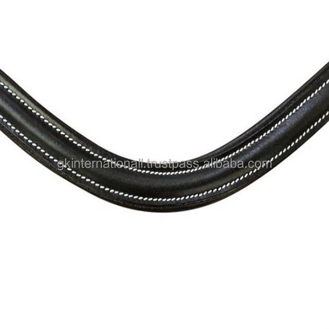 Bande de cuir à sourcils de cheval en forme incurvée, en cuir noir avec couture noire, blanche et marron, tailles personnalisées